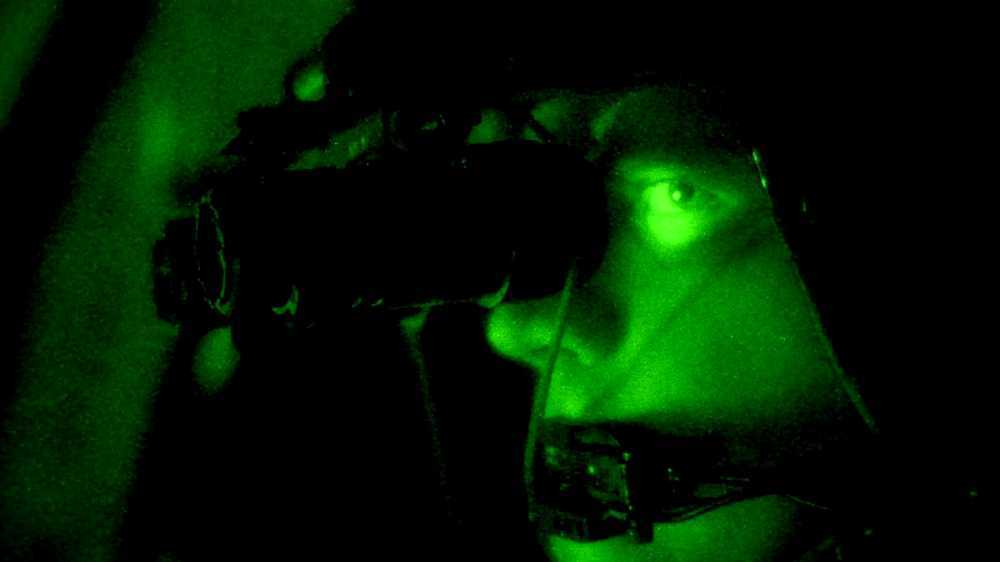 Active infrared night-vision combines infrared illumination of spectral range 700-1,000 nm (just below the visible spectrum of the human eye) with CCD cameras sensitive to this light. The resulting scene, which is apparently dark to a human observer, appears as a monochrome image on a normal display device. Because active infrared night-vision systems can incorporate illuminators that produce high levels of infrared light, the resulting images are typically higher resolution than other night-vision technologies. Active infrared night vision is now commonly found in commercial, residential and government security applications, where it enables effective night time imaging under low-light conditions. However, since active infrared light can be detected by night-vision goggles, there can be a risk of giving away position in tactical military operations.